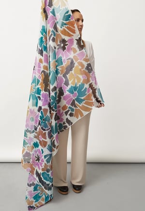 Un fular XXL en suave voile, un tejido fino y agradable.