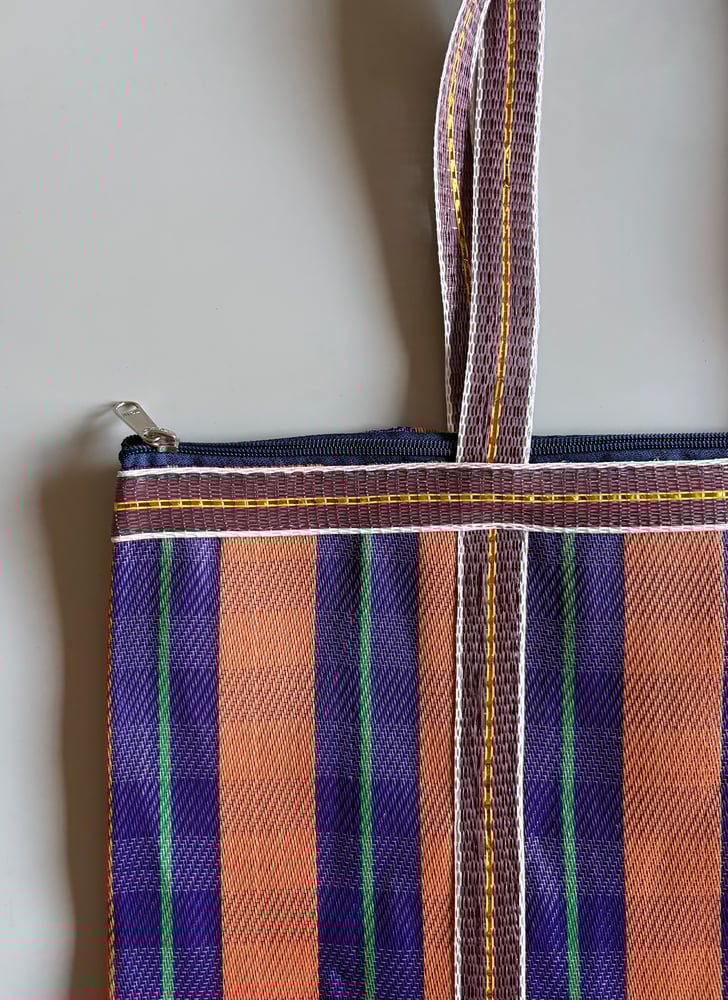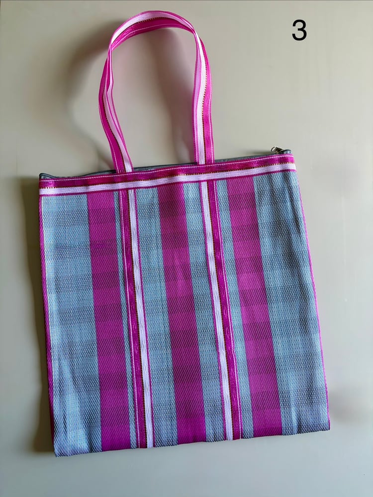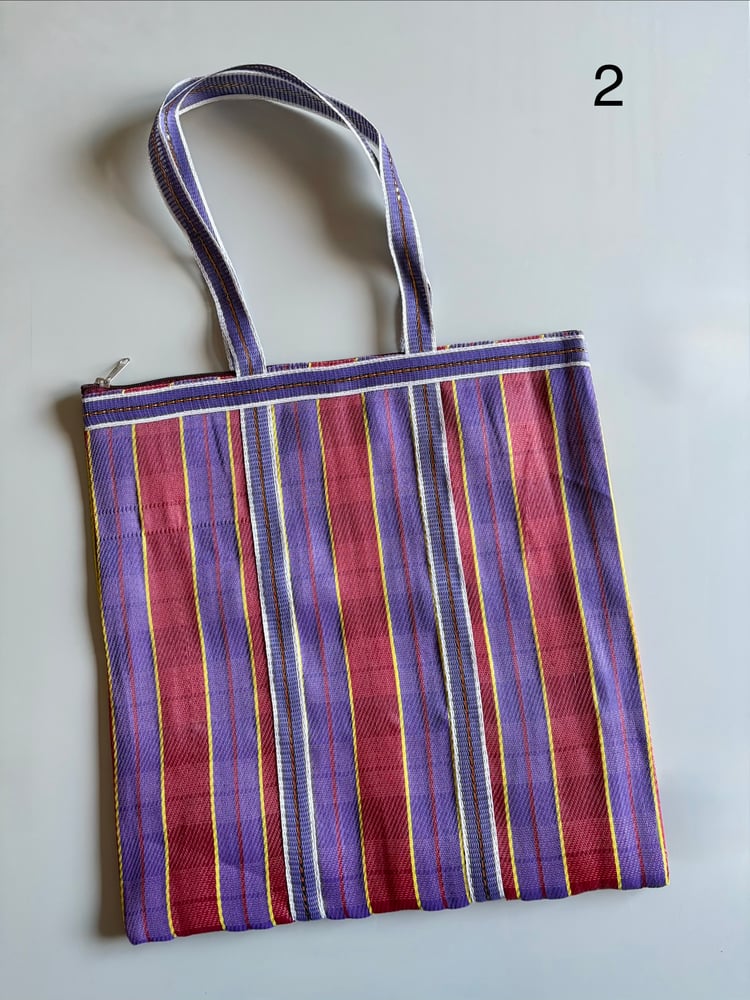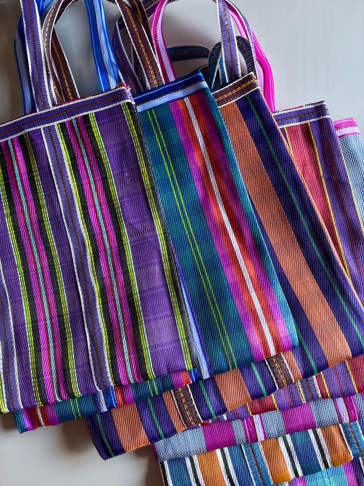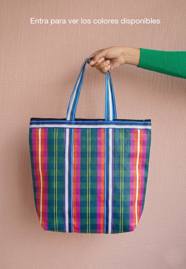 Bolsos ligeros con diseño de rayas hechos de material reciclado.