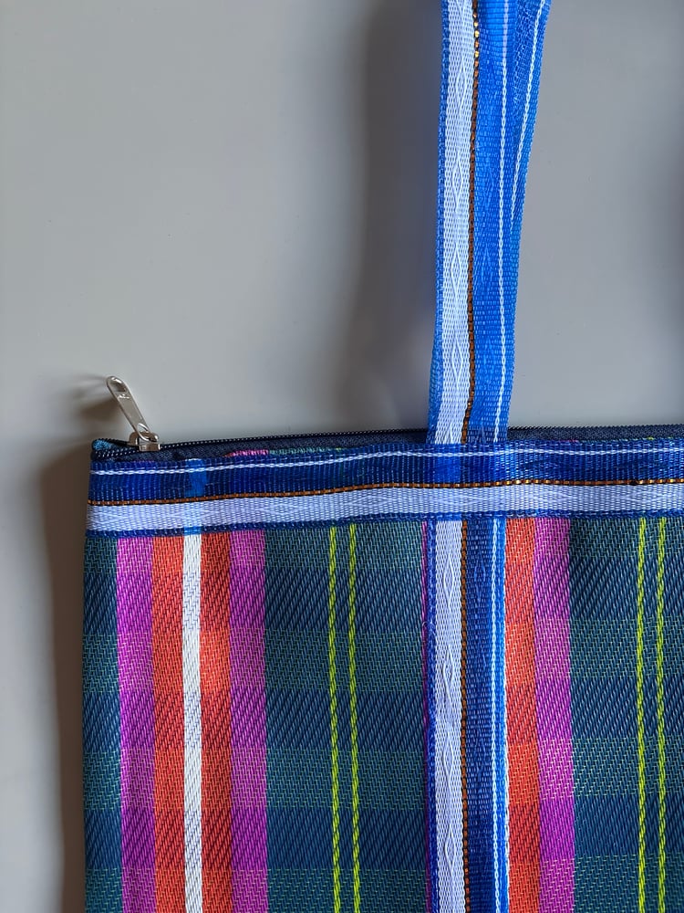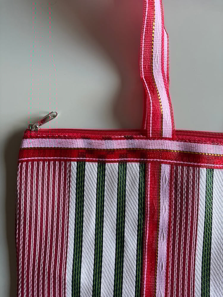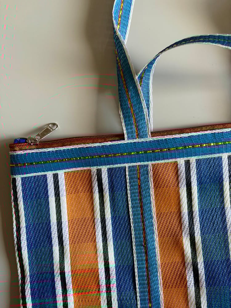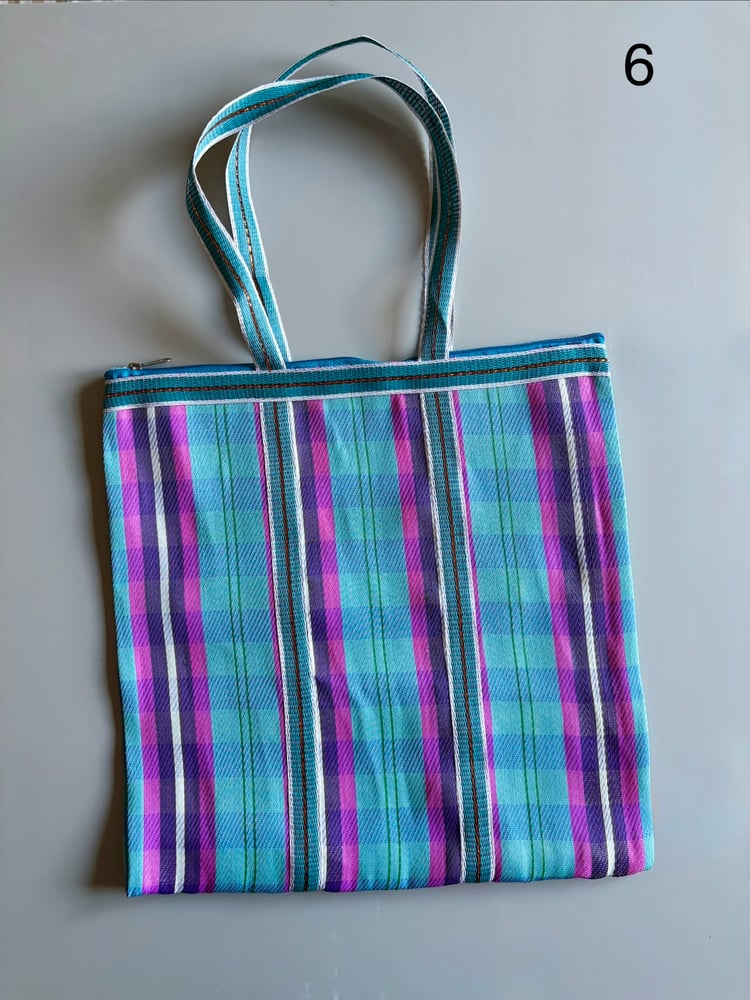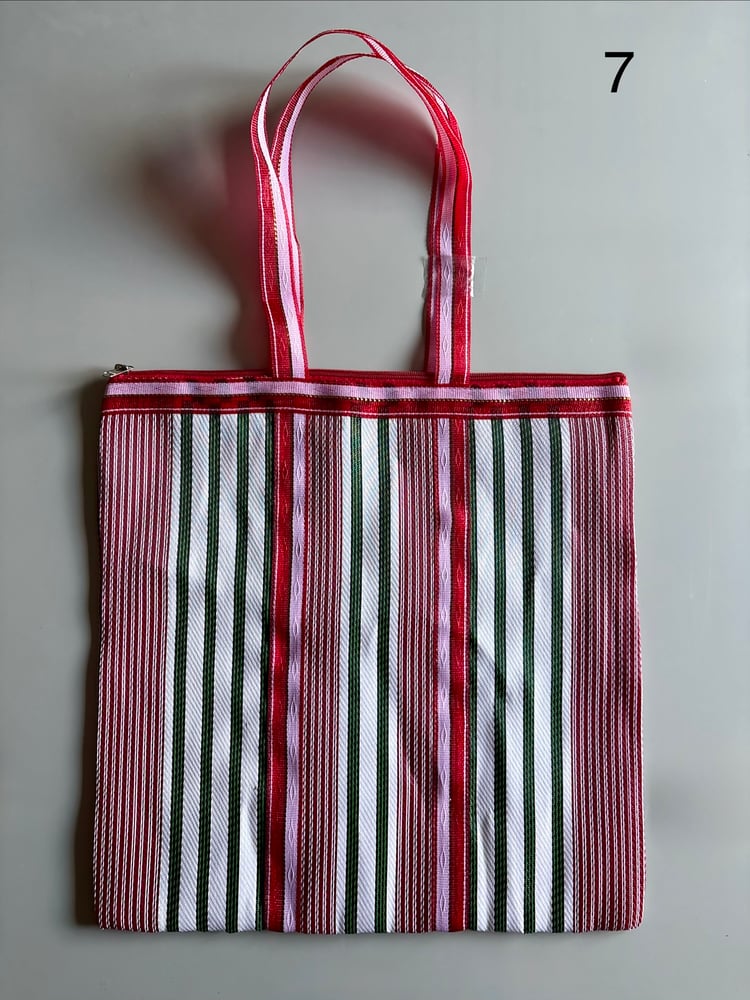 Bolsos ligeros con diseño de rayas hechos de material reciclado.