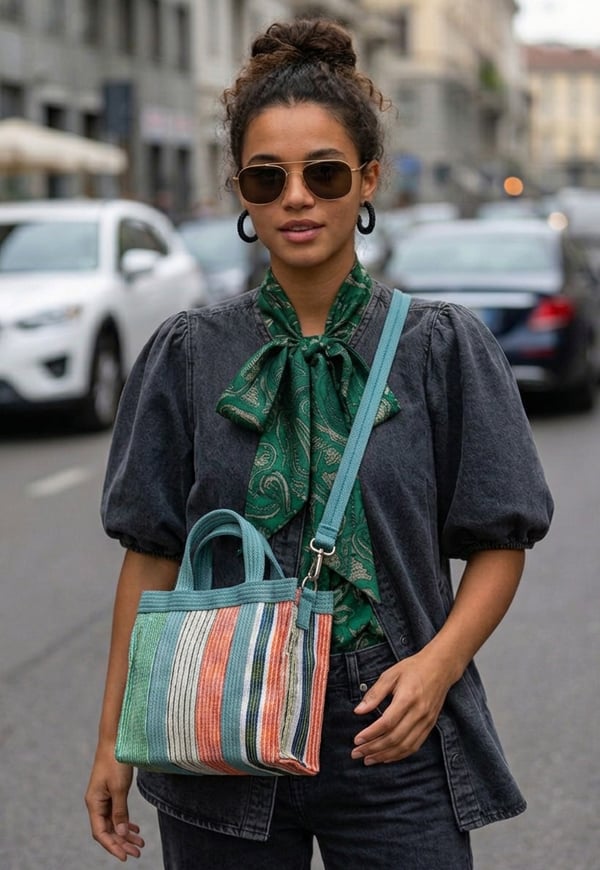 Bolsos ligeros con diseño de rayas hechos de material reciclado y cintas de algodón.