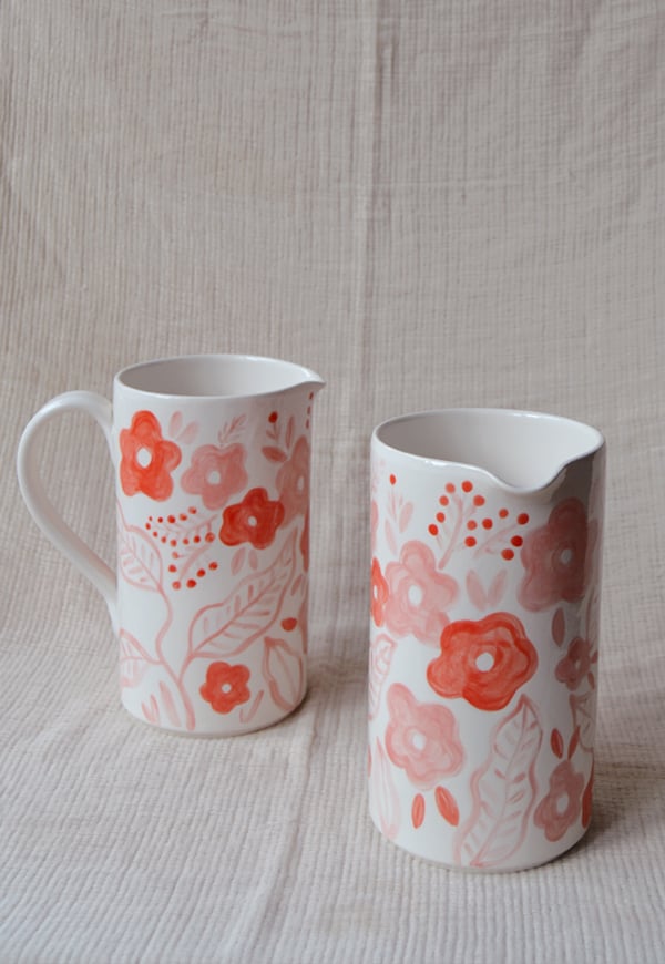 JARRÓN DE CERÁMICA PINTADA A MANO - FLORES ROJAS