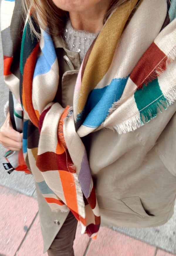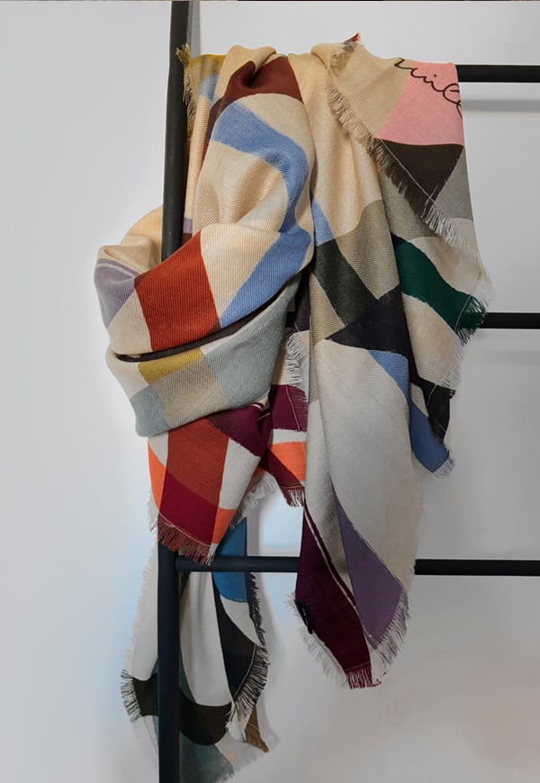 Maxi pañuelo en 100% lana, con un estampado único y exclusivo diseñado por ©moniquilla.