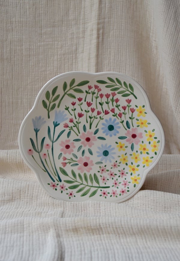 Plato de cerámica con ondas en forma de flor pintado a mano,